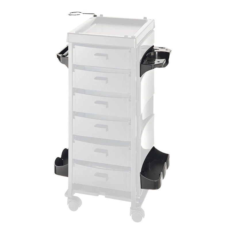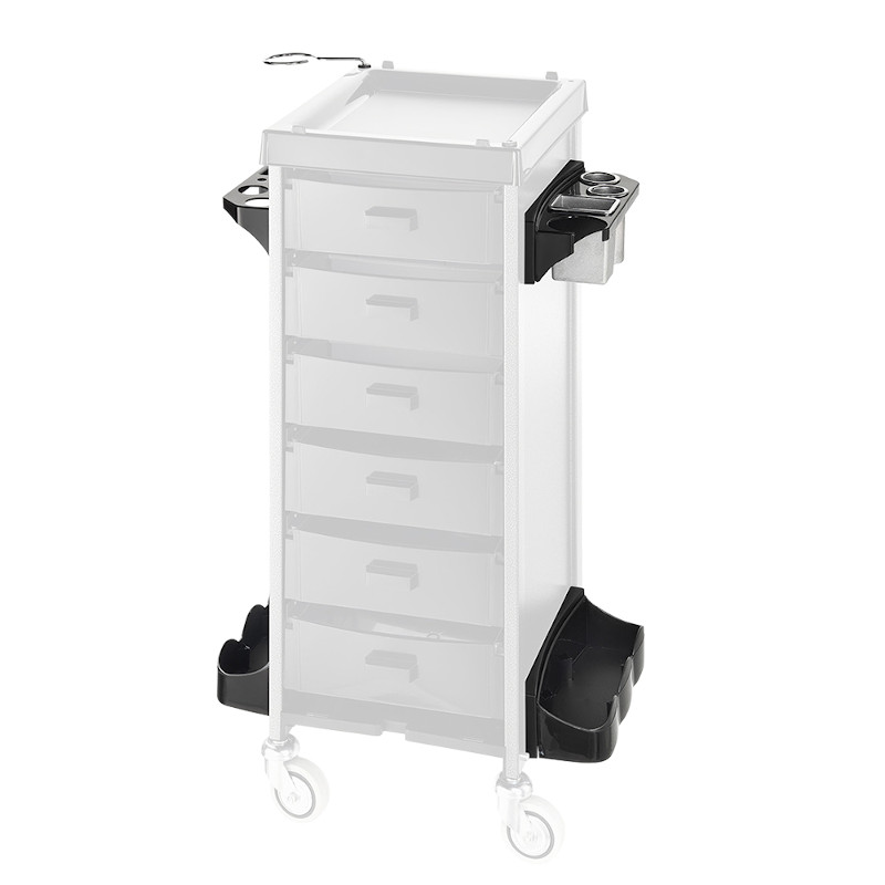 - 2 éléments avec lesquels vous aurez toujours votre matériel de coloration à portée de main : bols, pinceaux, rouleau d'aluminium. Avec deux porte-bouteilles inclus. Disponible en noir uniquement.