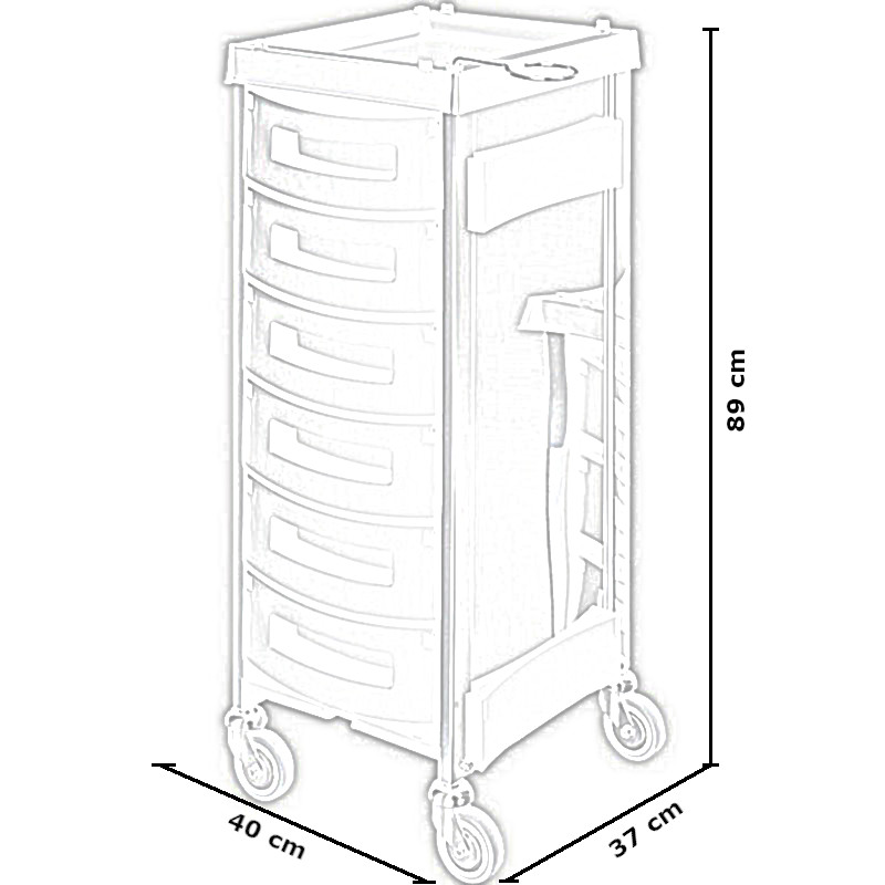 Le chariot de rangement et coloration KING INOX sera très pratique au quotidien grâce à ses multiples tiroirs, son support sèche-cheveux intégré, ses roulettes rapides spécialement conçues pour ne pas ramasser les cheveux laissés au sol et ses accessoires de rangement en option. Très pratique, bénéficie d'un système d'accroches sur le haut pour que vous puissiez y fixer un tiroir à l'avant ou à l'arrière, et garder à porter de main tout votre matériel. Il apportera aussi une très jolie touche décorative à votre salon de coiffure grâce à sa structure en acier inoxydable. Vous avez le choix selon vos besoins et vos envies, de prendre 5 ou 6 tiroirs de rangement en couleur noir ou argent et d'agrémenter votre chariot avec les accessoires, à découvrir plus bas sur cette page.
