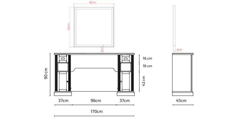 Equipée de nombreux rangements, les étagères intégrées, les tiroirs et placards offrent un espace de rangement supplémentaire pour les serviettes, les produits de coiffure et d'autres accessoires. Equipée d'un grand miroir avec rétroéclairage LED, la coiffeuse avec meuble WILLIAM 9B